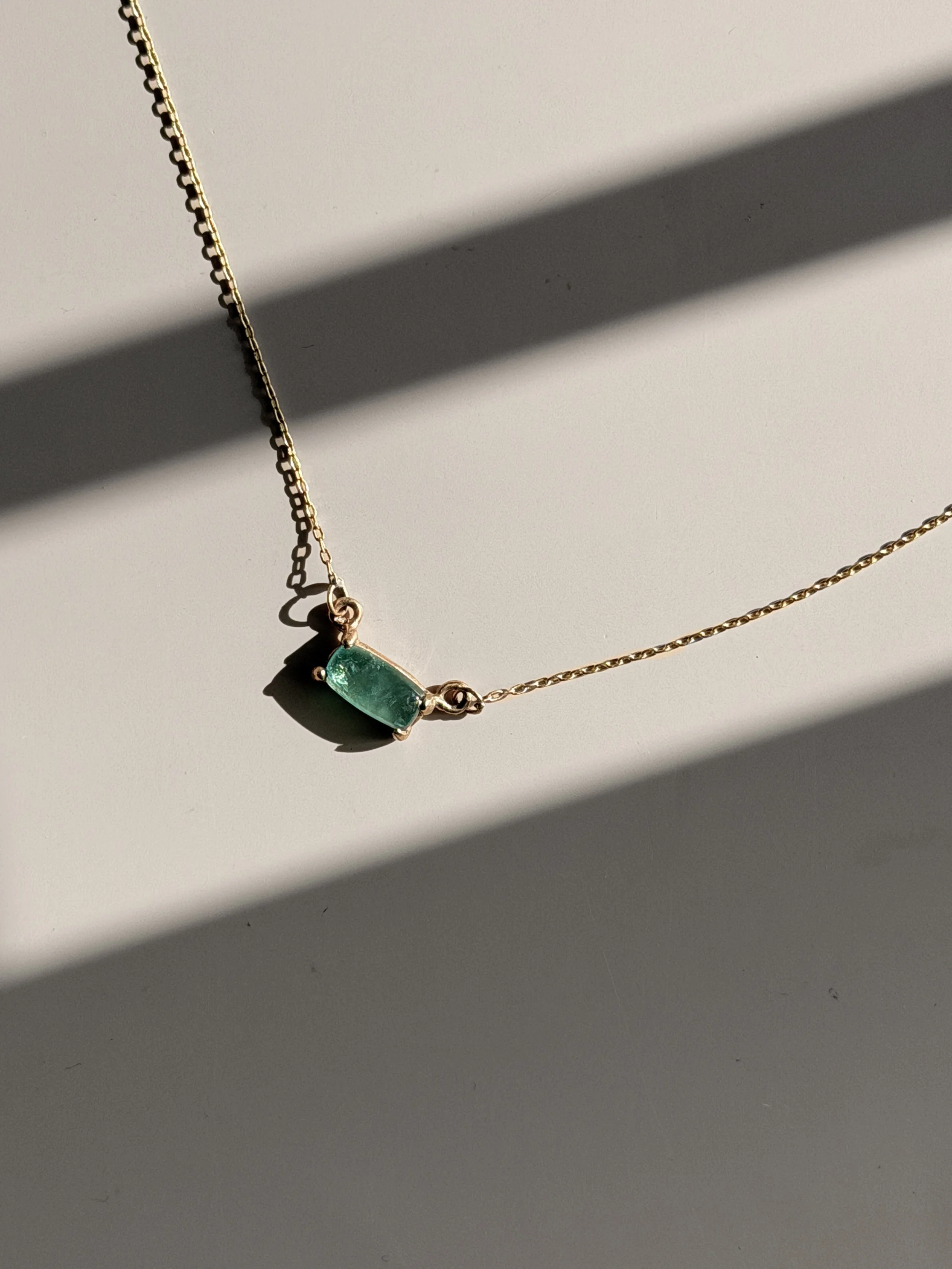 Strung on a fine recycled 14K gold chain, this piece embodies balance — raw yet refined, soft yet resilient. A talisman for those who carry warmth and courage in their hearts.